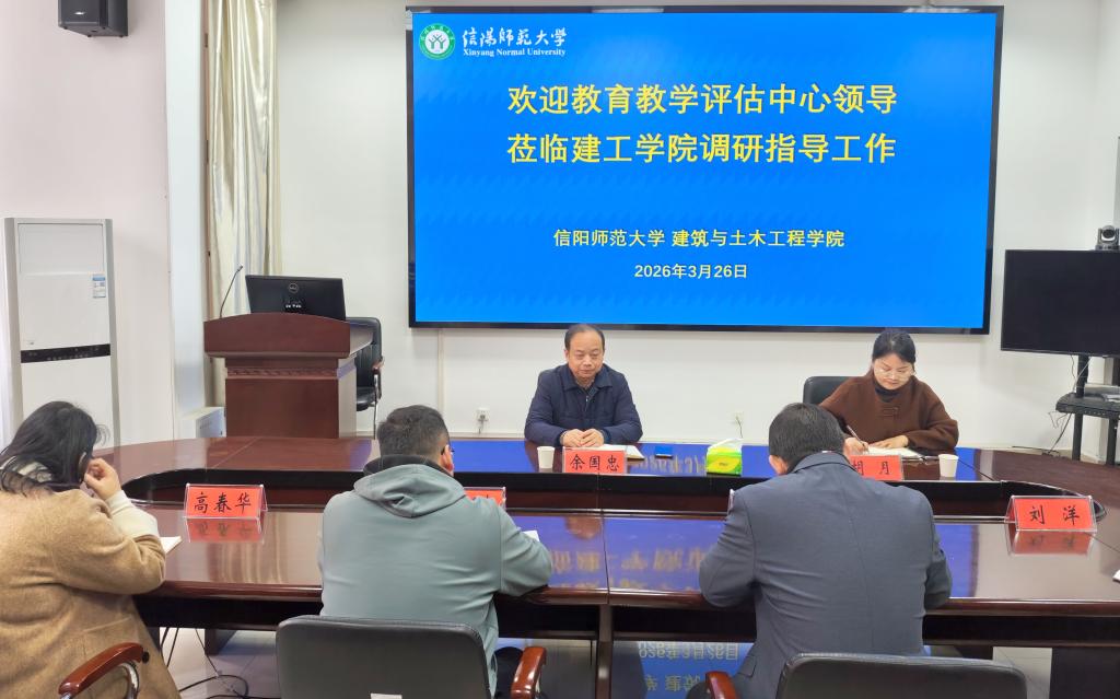 326日,学校教育教学评估中心主任余国忠一行到建筑与土木工程学院调研指导工程教育认证工作。建工学院党委书记王永贵、院长周葆春、土木工程系主任高春华、办公室主任刘洋、荆华龙博士参加座谈。