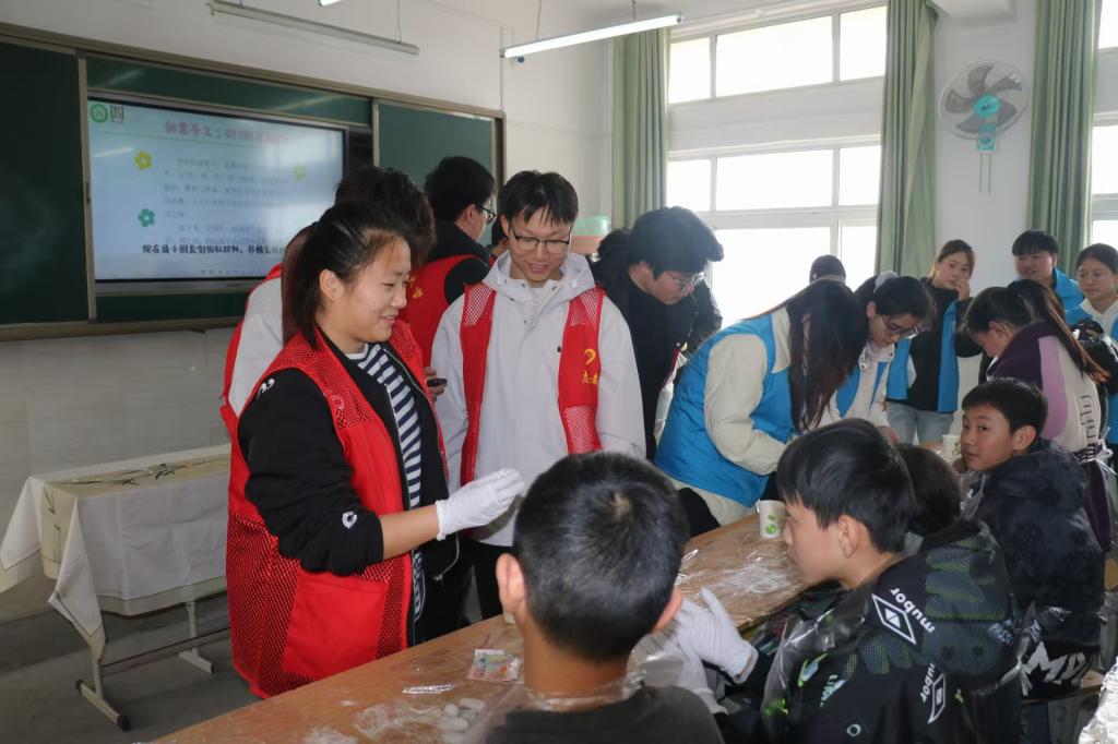 关爱特殊群体,传递社区温情。在华森社区,志愿者们陪伴独居老人聊天解闷,送上暖心慰问品,栽下象征希望与生机的树苗,以青春汗水为社区增绿添美,点亮“幸福社区”的温暖底色。在信阳市特殊教育学校,志愿者们通过精心设计的互动游戏、茶艺文化展示、共同制作冰皮月饼等环节,与特殊儿童们亲密互动、真诚交流,让孩子们感受到来自社会的真挚关爱。