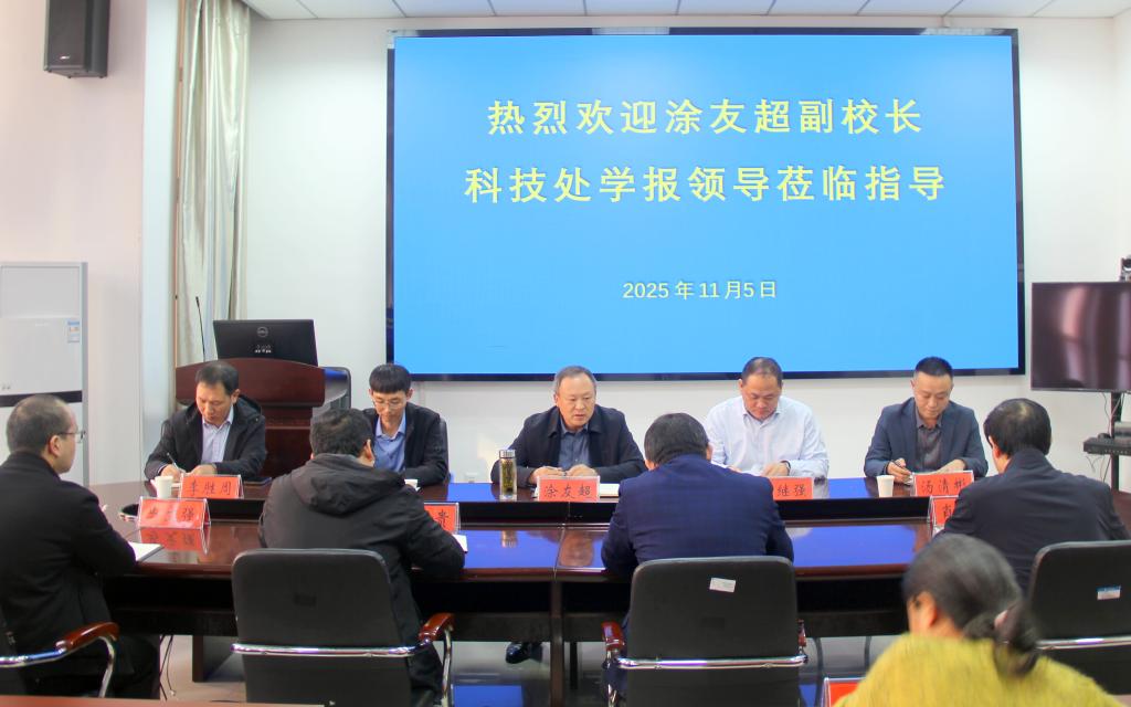 11月5日,副校长涂友超带领科技处处长牛继强、学报编辑部主任邱海洋、科技处副处长汤清彬、平台与成果科科长李胜周莅临建工学院调研指导科研工作;学院党委书记王永贵、院长周葆春、副院长肖琪聃、科研秘书马文强、邱文华博士参加调研。